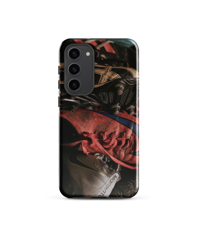 Sumérgete en el corazón de la acción de rugby con el casco Samsung CRAMPON Les Francophones. Esta pieza de la gama de la Copa Mundial de Rugby en Francia presenta una imagen de colores llamativos, que muestra una multitud de pinzas entrelazadas en primer plano. Muestre con orgullo su amor por el rugby mientras protege su teléfono con estilo y elegancia.