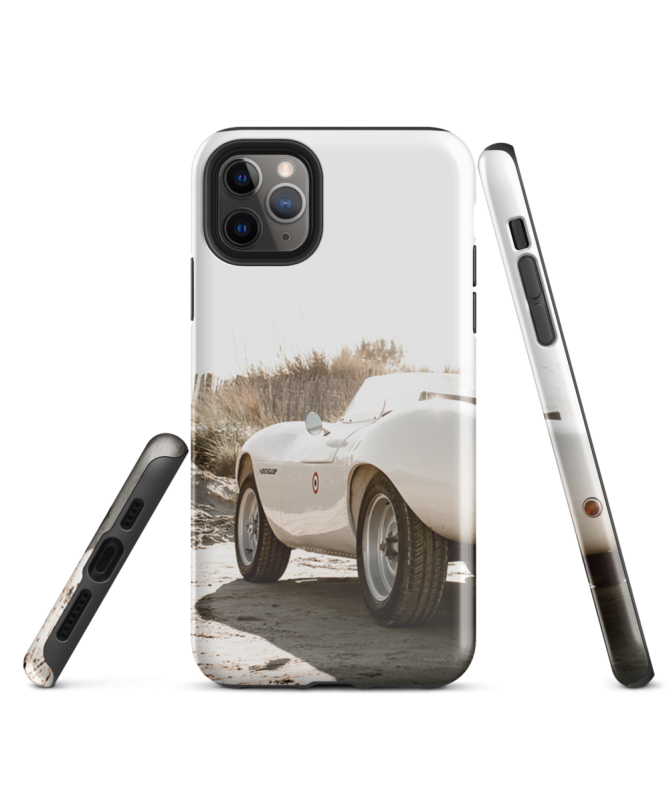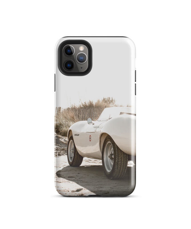 Sumérgete en la elegancia del automóvil con nuestro casco "iPhone Auto Plage Les Francophones". Este casco muestra un legendario Jaguar en una encantadora playa del sur de Francia.