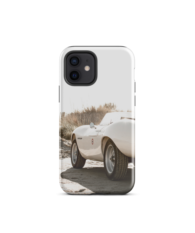 Sumérgete en la elegancia del automóvil con nuestro casco "iPhone Auto Plage Les Francophones". Este casco muestra un legendario Jaguar en una encantadora playa del sur de Francia.