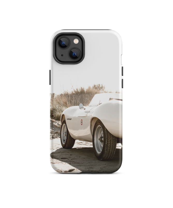 Sumérgete en la elegancia del automóvil con nuestro casco "iPhone Auto Plage Les Francophones". Este casco muestra un legendario Jaguar en una encantadora playa del sur de Francia.