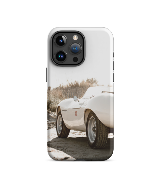 Sumérgete en la elegancia del automóvil con nuestro casco "iPhone Auto Plage Les Francophones". Este casco muestra un legendario Jaguar en una encantadora playa del sur de Francia.