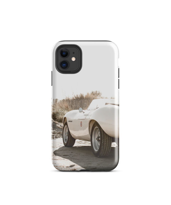 Sumérgete en la elegancia del automóvil con nuestro casco "iPhone Auto Plage Les Francophones". Este casco muestra un legendario Jaguar en una encantadora playa del sur de Francia.
