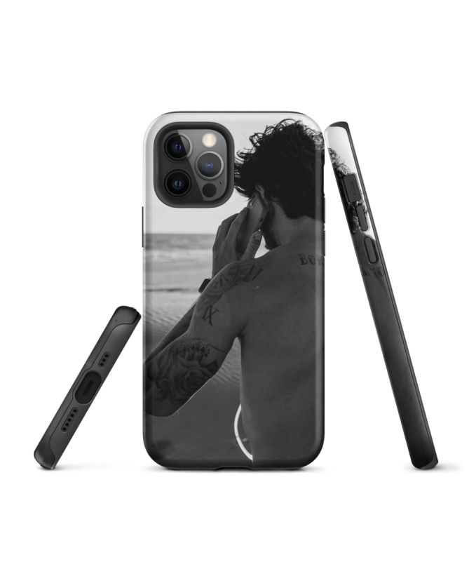 Captura la belleza serena de la costa con el iPhone Dos Les Francophones, con nuestro modelo Sacha de espalda hacia el mar. Este elegante casco envuelve su teléfono en un diseño atractivo mientras expresa su estilo distintivo.