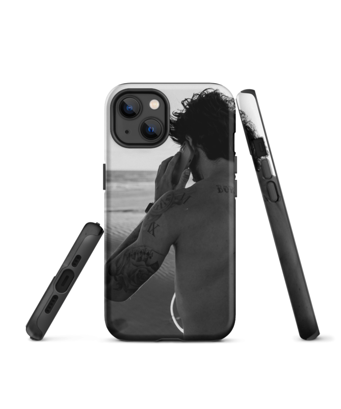 Captura la belleza serena de la costa con el iPhone Dos Les Francophones, con nuestro modelo Sacha de espalda hacia el mar. Este elegante casco envuelve su teléfono en un diseño atractivo mientras expresa su estilo distintivo.