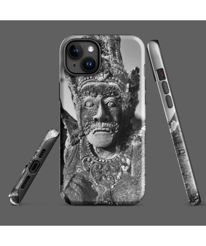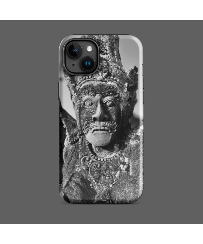 Descubra la funda para iPhone FREDB REGARD, inspirada en una fotografía en blanco y negro de una cautivadora estatua de piedra de Bali. Dale un toque artístico a tu teléfono con este...