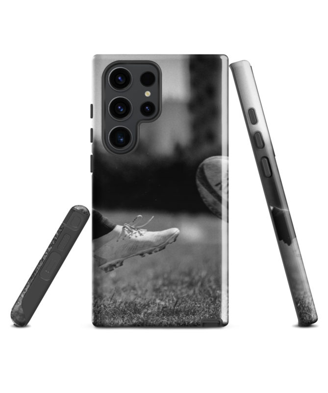 El casco Samsung CRAMBALL Les Francophones es una verdadera celebración de la intensidad del rugby. Esta hermosa carcasa lleva una captivante fotografía que representa un fuerte golpe en un balón de rugby. La escena llamativa resalta los detalles de los pinzas del jugador en acción, agregando un toque dinámico a la estética general.