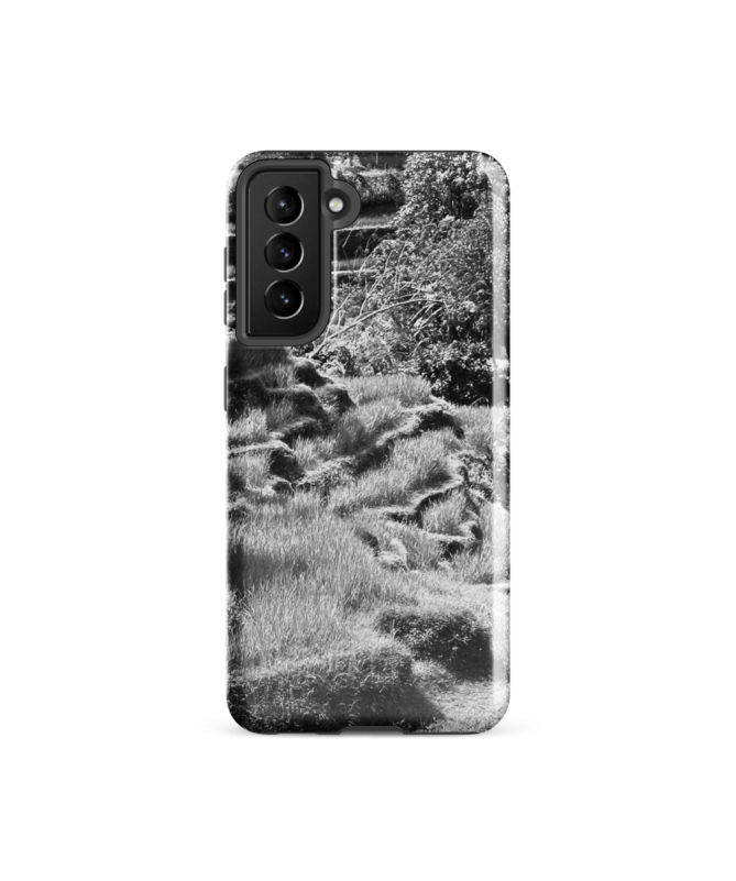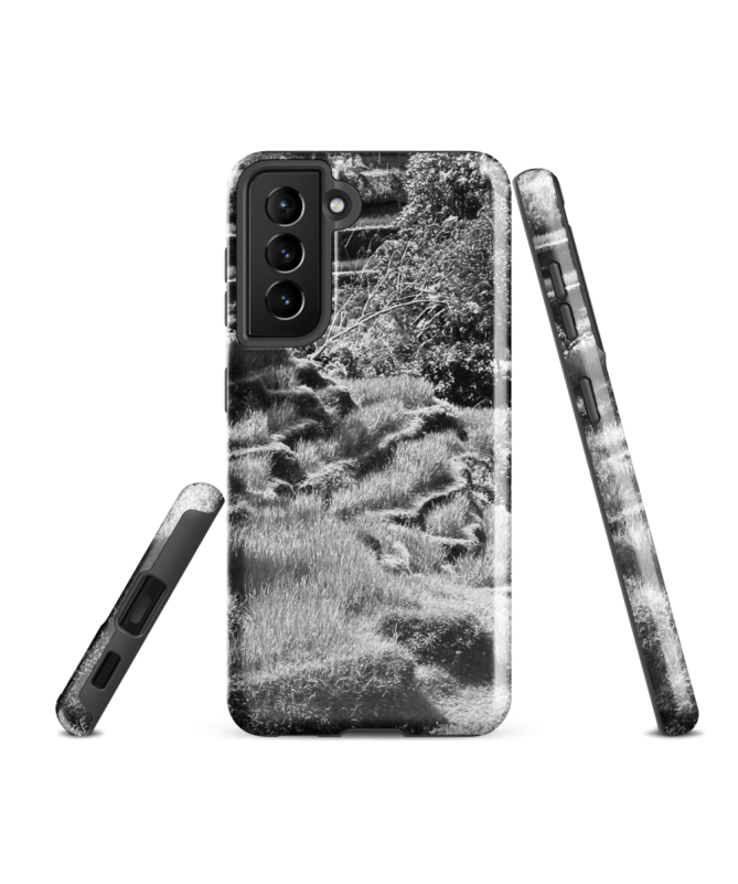 Sumérgete en la inmensidad de los arrozales de Tegalalang en Bali con la funda Samsung FREDB RIZ, una impactante vista en blanco y negro para realzar tu teléfono