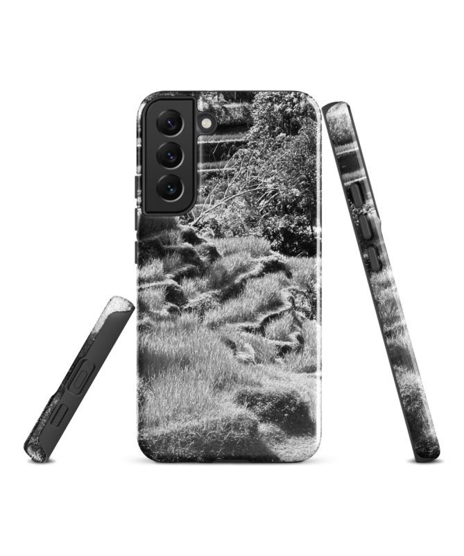Sumérgete en la inmensidad de los arrozales de Tegalalang en Bali con la funda Samsung FREDB RIZ, una impactante vista en blanco y negro para realzar tu teléfono