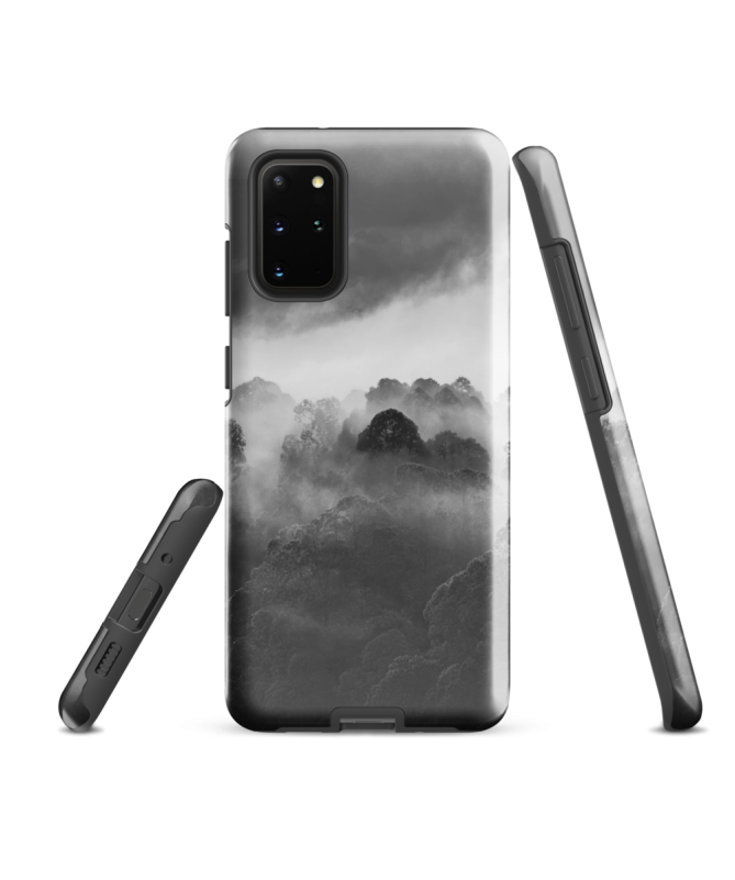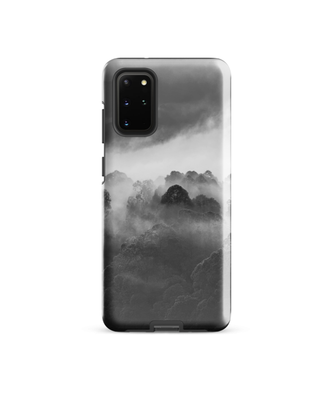 Explora la misteriosa belleza del bosque balinés con la funda Samsung FREDB POINTE, que captura en blanco y negro la enigmática silueta de un árbol que emerge de la niebla.