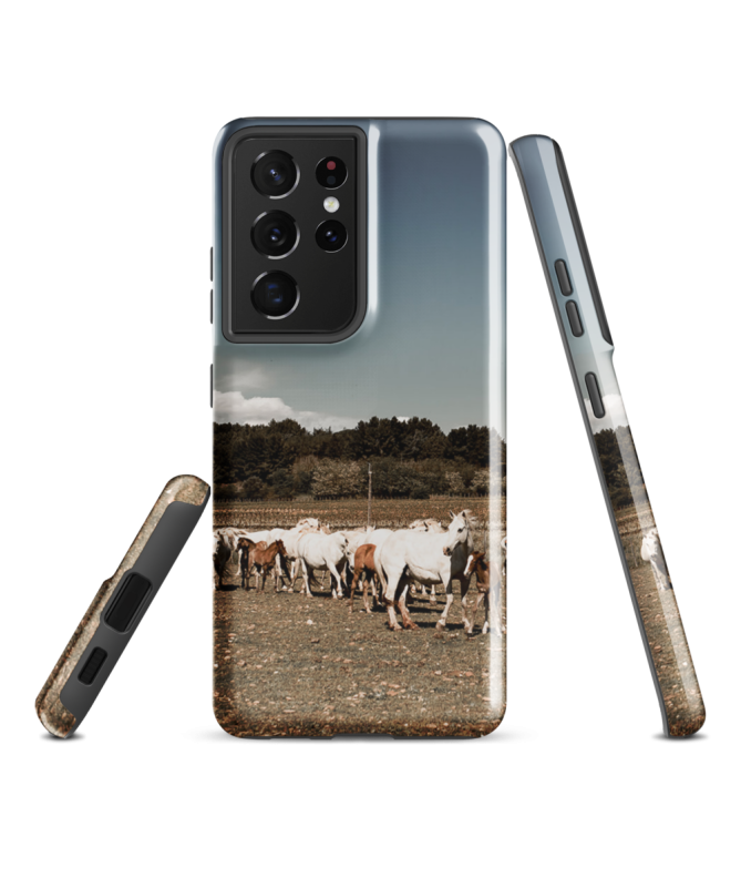 Capturez la grâce du cheval de Camargue avec la coque Samsung CHEVAL BLANC Les Francophones, une protection élégante pour votre téléphone.