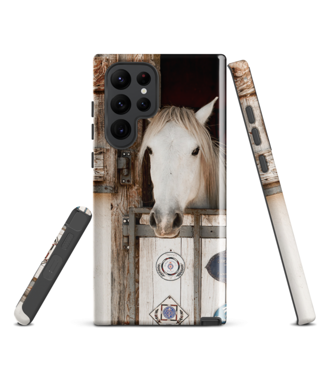 Découvrez la splendeur d'un cheval de Camargue sortant de son BOX avec la coque Samsung BOX Les Francophones.