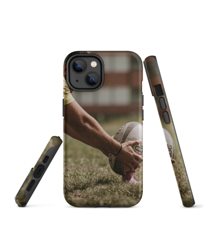 La coque iPhone BALLTIR Les Francophones met en lumière l'instant captivant où un joueur s'apprête à effectuer un tir de pénalité au rugby. La Photo immortalise la phase de préparation de positionnement du ballon. Avec des couleurs vivantes et un design distinctif, cette coque est un choix idéal pour les passionnés de ce sport. Elle offre une protection fiable à votre téléphone tout en reflétant votre attachement au rugby.