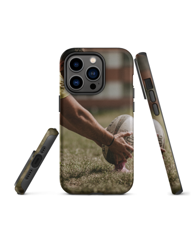 La coque iPhone BALLTIR Les Francophones met en lumière l'instant captivant où un joueur s'apprête à effectuer un tir de pénalité au rugby. La Photo immortalise la phase de préparation de positionnement du ballon. Avec des couleurs vivantes et un design distinctif, cette coque est un choix idéal pour les passionnés de ce sport. Elle offre une protection fiable à votre téléphone tout en reflétant votre attachement au rugby.