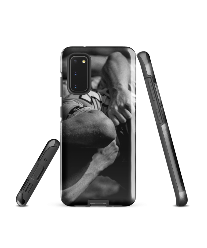 Affichez votre passion pour le rugby avec la coque Samsung BRAS Les Francophones, capturant la force et l'intensité du jeu à travers une image saisissante en noir et blanc de bras musclés dans une mêlée.