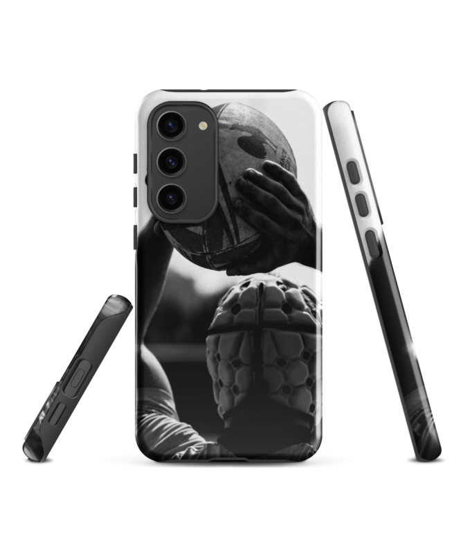 Affichez votre passion pour le rugby avec la coque "Samsung LANCE Les Francophones", mettant en avant le geste emblématique d'un talonneur lors d'une touche.