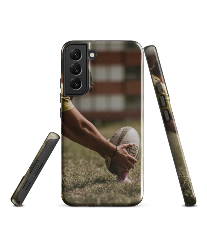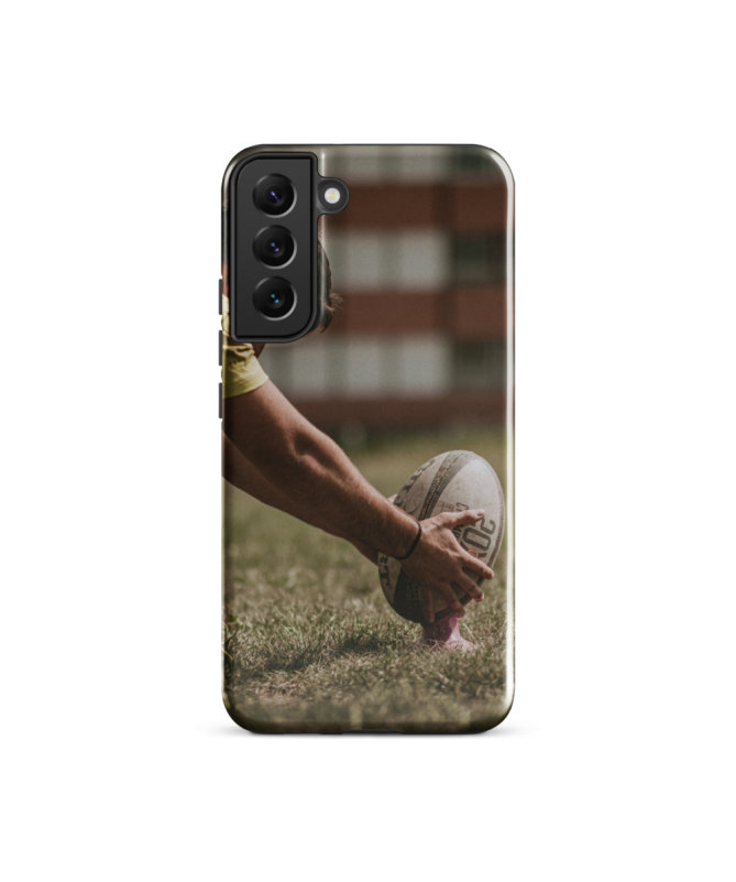 La coque Samsung BALLTIR Les Francophones met en lumière l'instant captivant où un joueur s'apprête à effectuer un tir de pénalité au rugby. La Photo immortalise la phase de préparation de positionnement du ballon. Avec des couleurs vivantes et un design distinctif, cette coque est un choix idéal pour les passionnés de ce sport. Elle offre une protection fiable à votre téléphone tout en reflétant votre attachement au rugby.