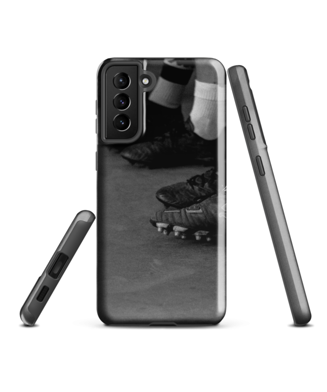 Capturez l'esprit du rugby avec la coque Samsung CRAMPON Les Francophones, arborant une photo en couleur de crampons entrelacés en gros plan, pour une protection élégante et sportive de votre téléphone.