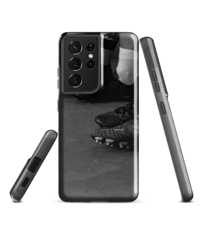 Capturez l'esprit du rugby avec la coque Samsung CRAMPON Les Francophones, arborant une photo en couleur de crampons entrelacés en gros plan, pour une protection élégante et sportive de votre téléphone.