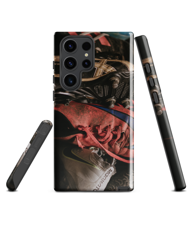 Capturez l'esprit du rugby avec la coque Samsung CRAMPON Les Francophones, arborant une photo en couleur de crampons entrelacés en gros plan, pour une protection élégante et sportive de...