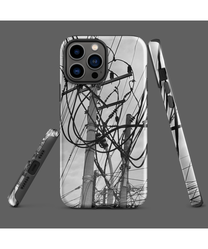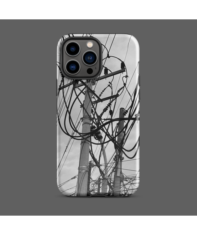 Découvrez la coque iPhone FREDB CABLE, où l'enchevêtrement artistique des câbles électriques de Bali crée un effet graphique saisissant, capturé par notre photographe partenaire FRED...