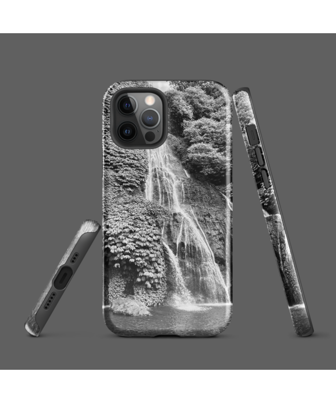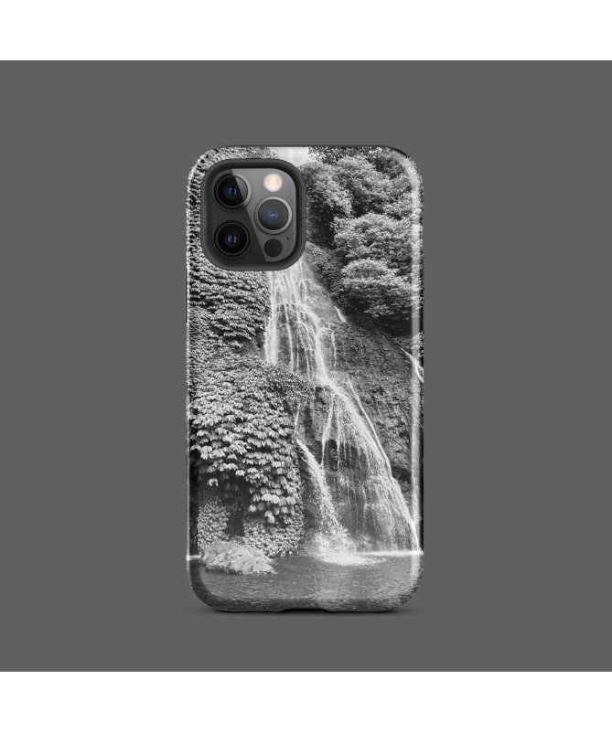 Explorez la majesté de Bali avec la coque iPhone FREDB NIAGARA, capturant en noir et blanc l'essence des chutes d'eau exotiques.