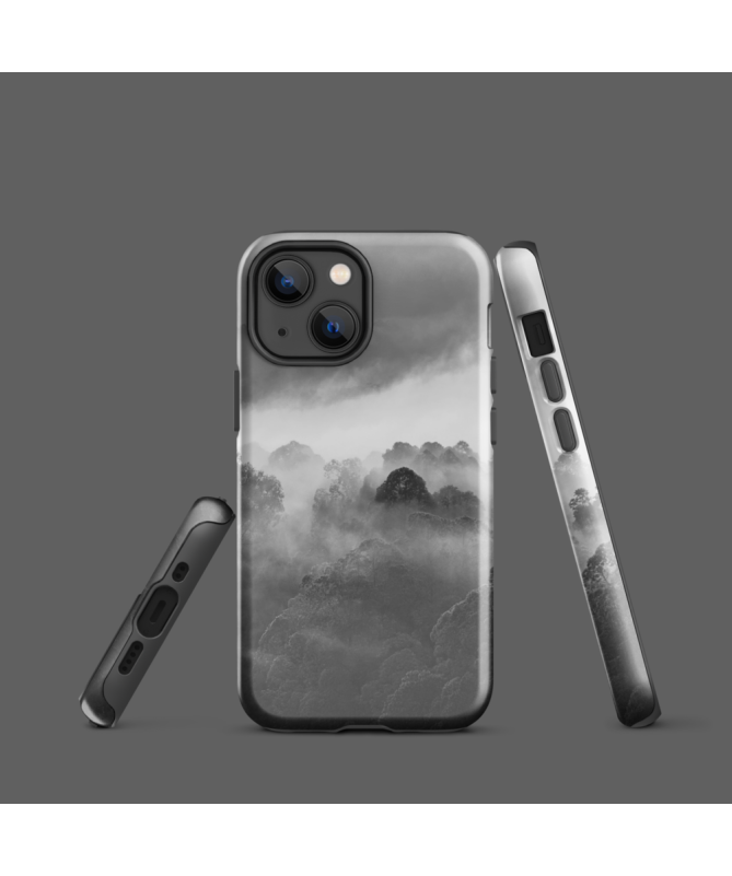 Découvrez la coque iPhone FREDB POINTE, une véritable œuvre d'art qui vous transporte au cœur de la forêt balinaise. Cette photographie en noir et blanc capture la magie d'un matin brumeux, où la silhouette majestueuse d'un arbre se détache de manière envoûtante. L'atmosphère mystique de cette image évoque la sérénité de la nature sauvage et vous invite à plonger dans une aventure sensorielle.