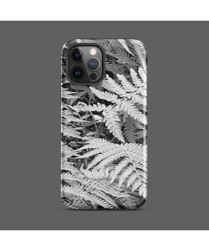 Plongez dans l'univers fascinant de la nature balinaise avec la coque iPhone FREDB FOUGÈRE, capturant la délicatesse d'une fougère en noir et blanc.
