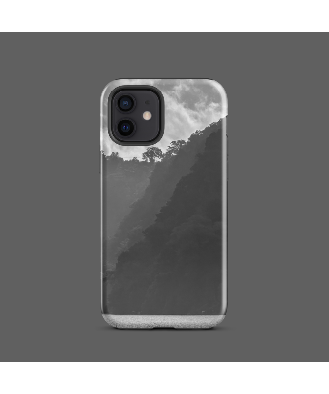 Découvrez la puissance de la nature avec notre coque iPhone FREDB DELUGE, inspirée d'une photo en noir et blanc capturant la majesté d'une cascade qui évoque un véritable déluge.