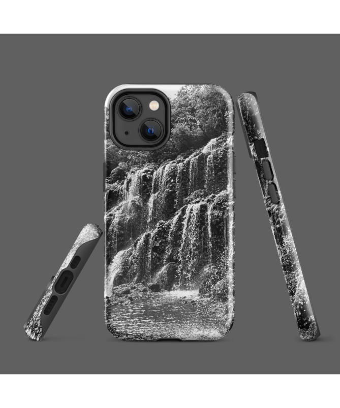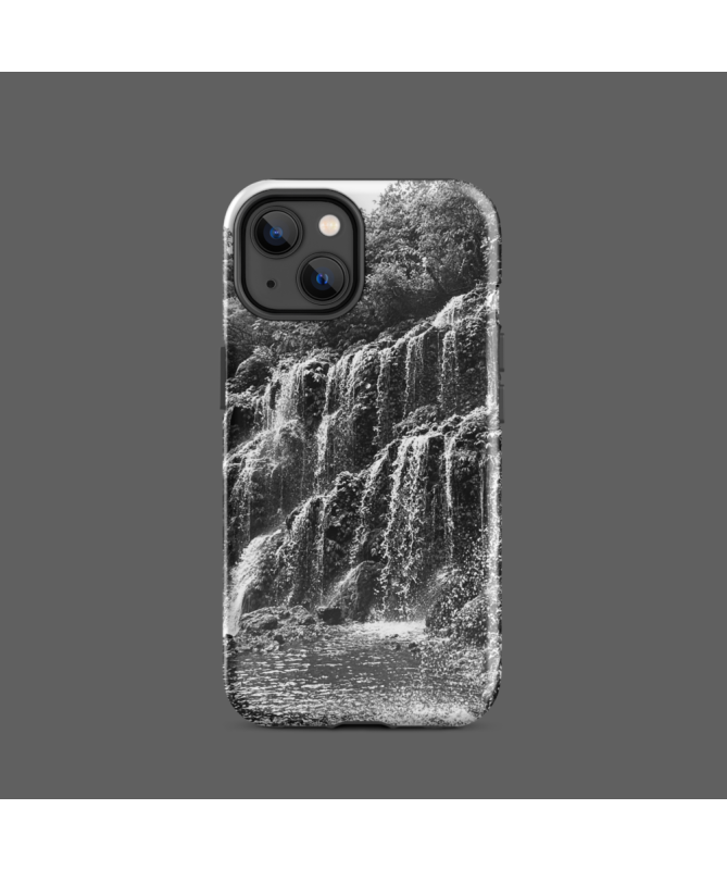 Découvrez la puissance de la nature avec notre coque iPhone FREDB DELUGE, inspirée d'une photo en noir et blanc capturant la majesté d'une cascade qui évoque un véritable déluge.