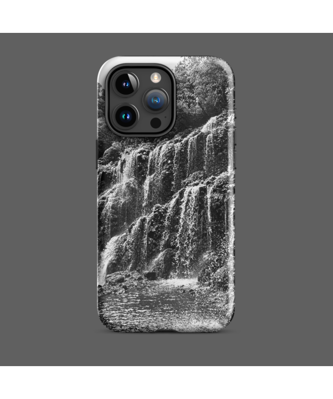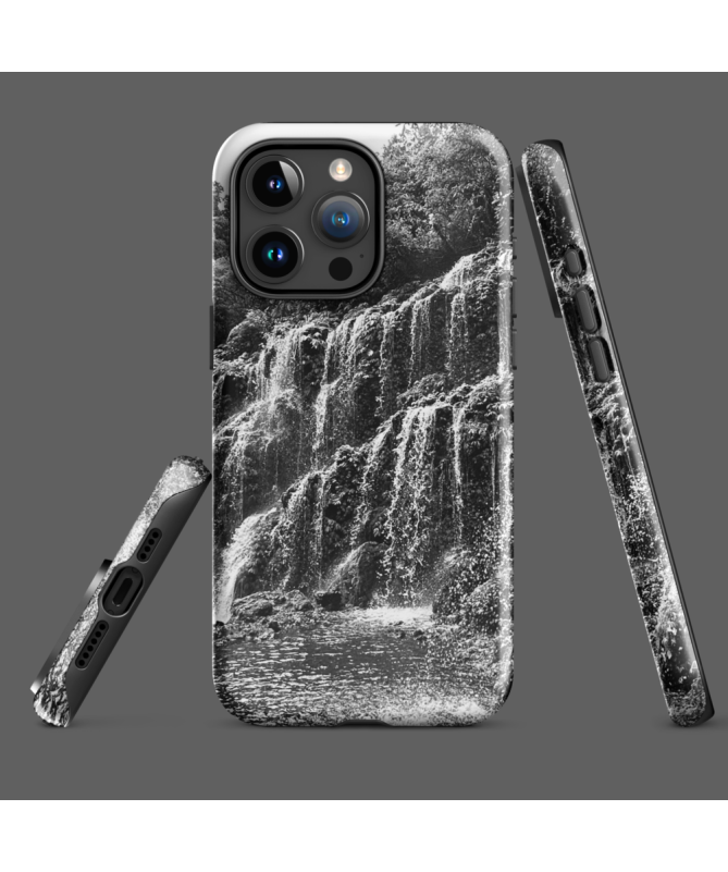 Découvrez la puissance de la nature avec notre coque iPhone FREDB DELUGE, inspirée d'une photo en noir et blanc capturant la majesté d'une cascade qui évoque un véritable déluge.