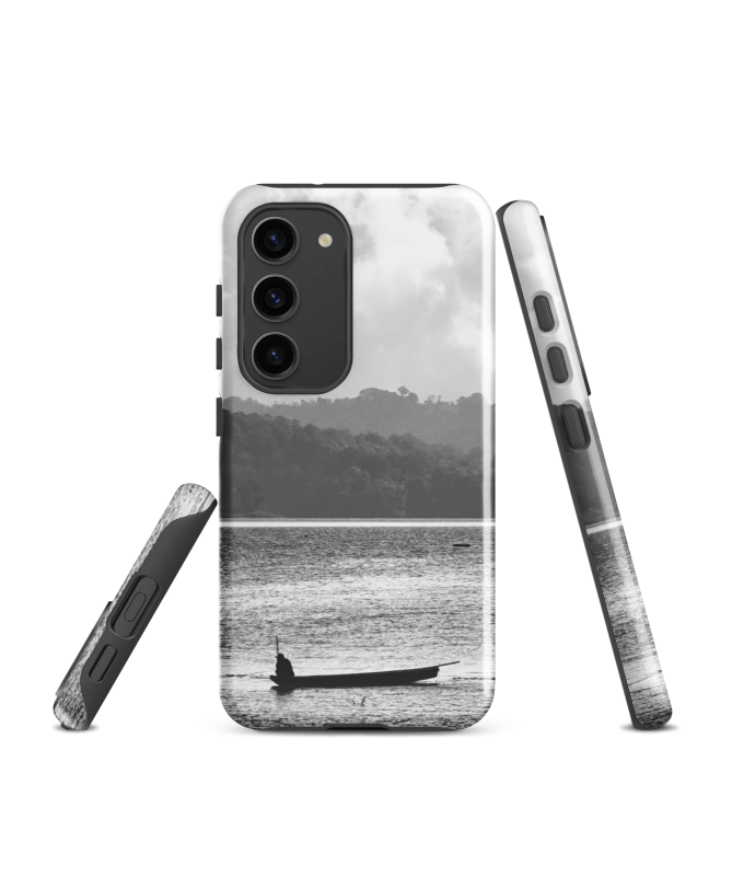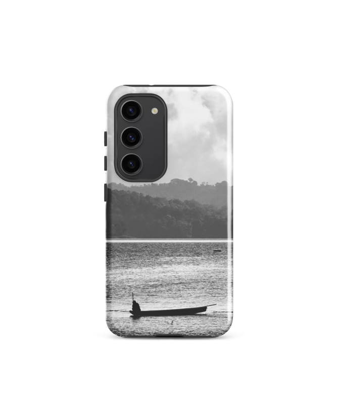 Coque Samsung FREDB PECHEUR : Vivez l'esprit de Bali avec cette coque captivante en noir et blanc, mettant en avant un pêcheur solitaire sur son bateau, voguant sur l'océan. Un hommage à...