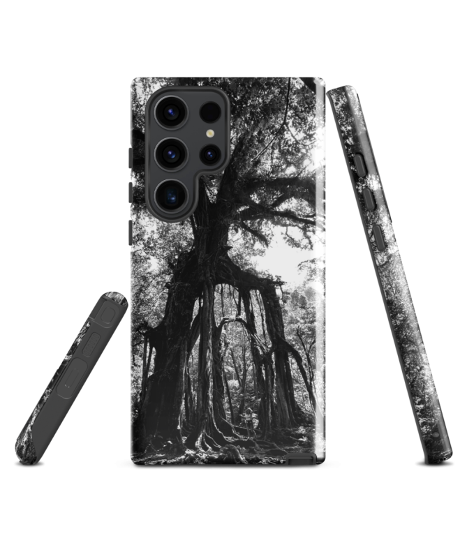 Coque Samsung FREDB ARBRE : Une ode à la majesté de la nature balinaise, capturée en noir et blanc pour une expérience visuelle unique.