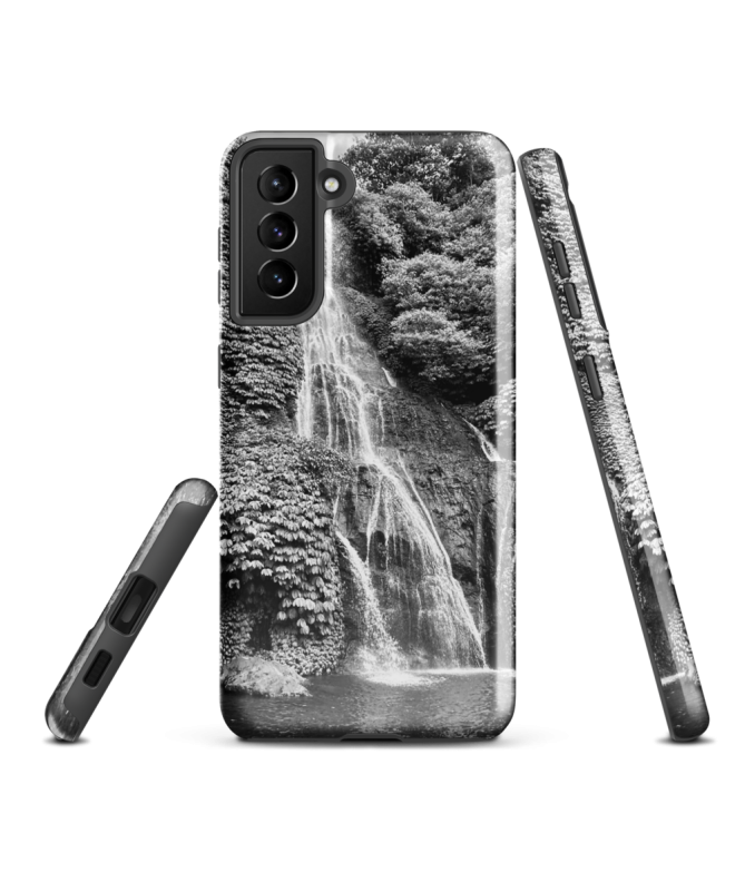 Explorez la majesté de Bali avec la coque Samsung FREDB NIAGARA, capturant en noir et blanc l'essence des chutes d'eau exotiques.