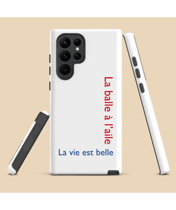 La coque Samsung Aile Les Francophones, arborant l'inscription 'la balle à l'aile, la vie est belle' aux couleurs du drapeau français, incarne l'esprit sportif du rugby dans notre gamme...