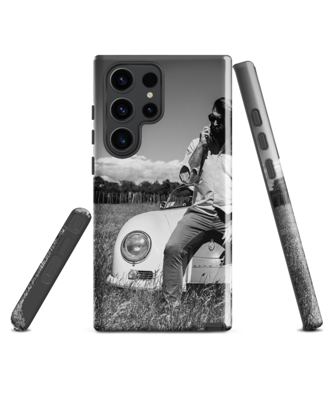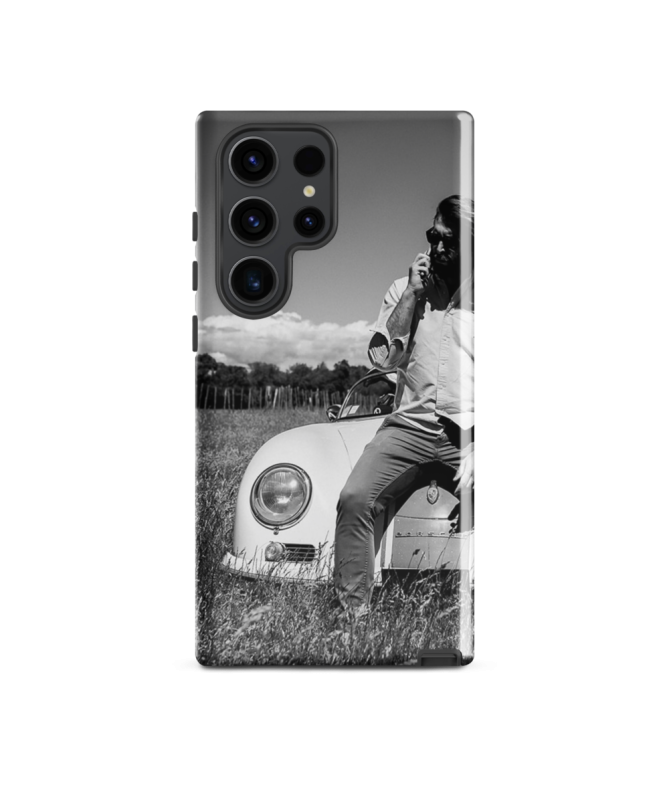 Découvrez la coque Samsung "Alex Les Francophones", mettant en vedette notre mannequin Alex assis sur le capot de la célèbre Porsche 356. Cette coque élégante enveloppe votre téléphone avec style et exprime votre personnalité distinctive.