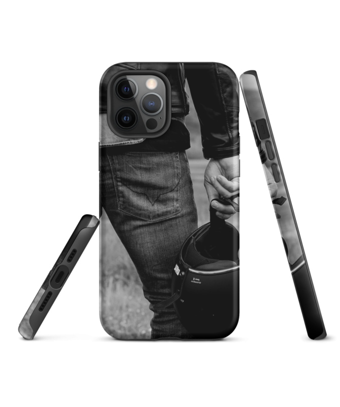 Exprimez votre passion pour la moto avec notre coque "iPhone MaxCasque Les Francophones". Mettant en avant notre mannequin Max en tant que motard, cette coque incarne l'esprit de l'aventure.