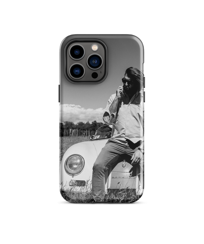 Célébrez le charme automobile avec notre coque "iPhone AutoAlex Les Francophones". Mettant en vedette notre mannequin Alex assis sur le capot d'une Porsche 356, cette coque incarne l'élégance intemporelle.