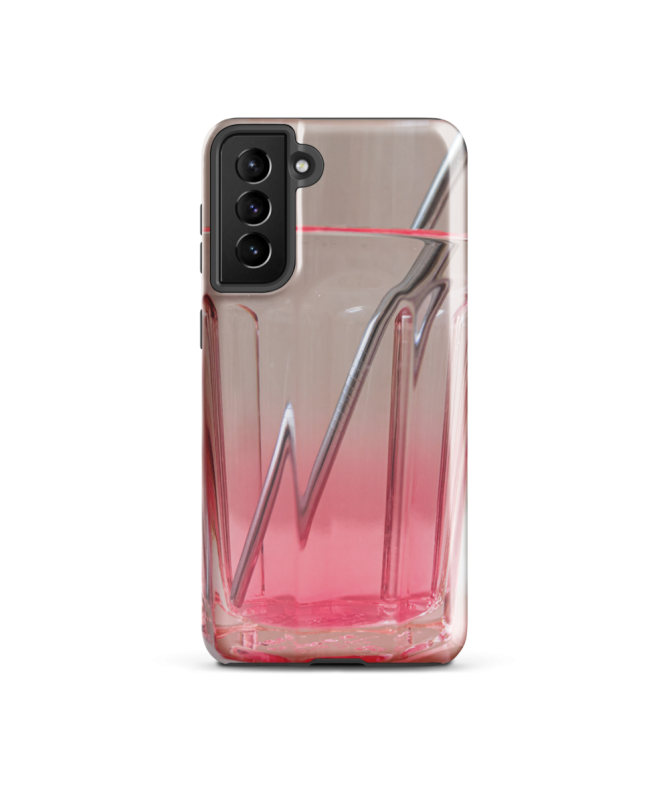 Dive into a captivating visual illusion with our Samsung Grenadine shell Les Francophones. Inspired by a grenadine glass with a metal straw, this shell offers an original and striking optical effect.