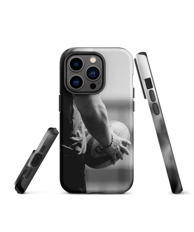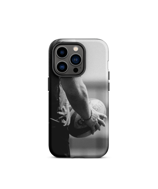 Proudly display your love for rugby with the iPhone shell MAINBALL Les Francophones of our Rugby World Cup range. This hull features a captivating color photo of a rugby player holding the ball with determination. The image captures the decisive moment before a game, capturing the intensity and passion of sport.