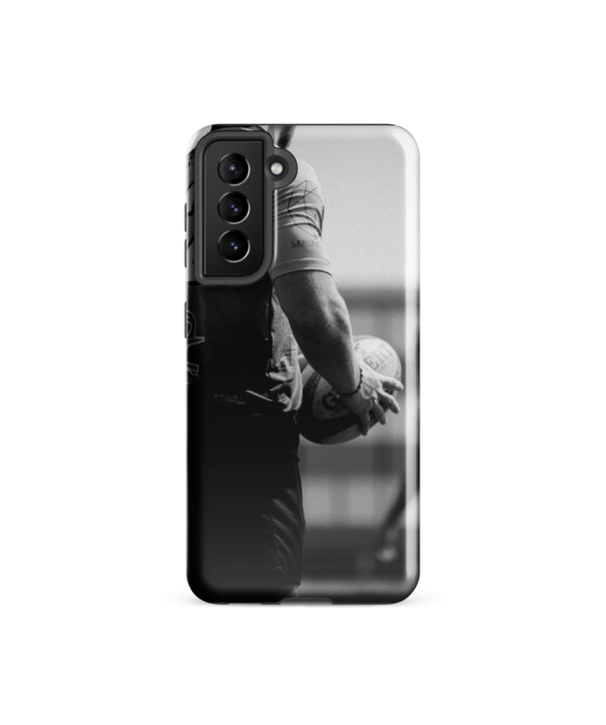Proudly display your love for rugby with the Samsung MAINBALL shell Les Francophones of our Rugby World Cup range. This hull features a captivating color photo of a rugby player holding the ball with determination. The image captures the decisive moment before a game, capturing the intensity and passion of sport.