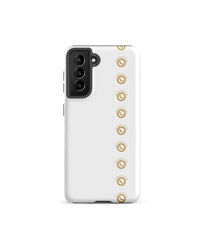 Discover the sublime Samsung VERTICAL OR shell Les Francophones, a true ode to elegance and refinement. This bright white hull highlights our brand's logos, delicately decorated with a sparkling golden tint. Not only does it add a touch of luxury to your phone, but it protects it with style.