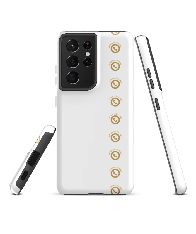 Discover the sublime Samsung VERTICAL OR shell Les Francophones, a true ode to elegance and refinement. This bright white hull highlights our brand's logos, delicately decorated with a sparkling golden tint. Not only does it add a touch of luxury to your phone, but it protects it with style.