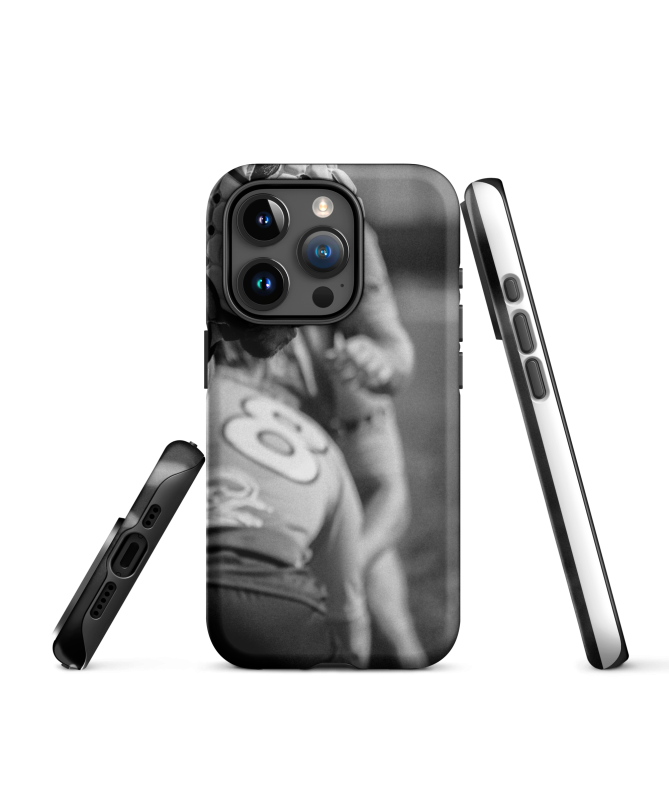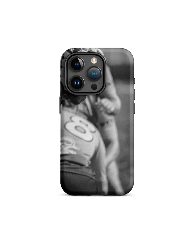 Dive into the heart of rough action with the iPhone RUCK Les Francophones. This shell, part of our special Rugby World Cup in France, presents a striking black and white photo of a ruck in formation. A third central line is supported by its teammates, capturing the intensity and comradeship of the game.