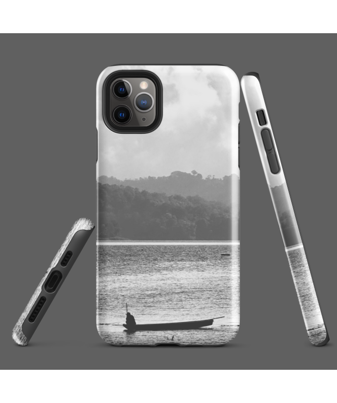 FREDB FISHERMAN iPhone Case: Experience the spirit of Bali with this captivating black and white case, featuring a lone fisherman on his boat, sailing on the ocean. A tribute to the...