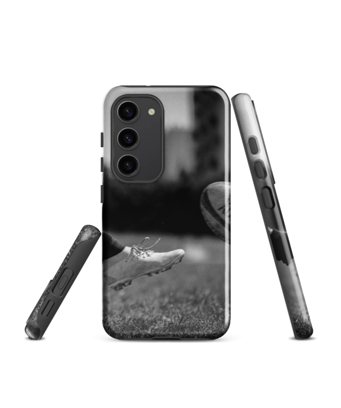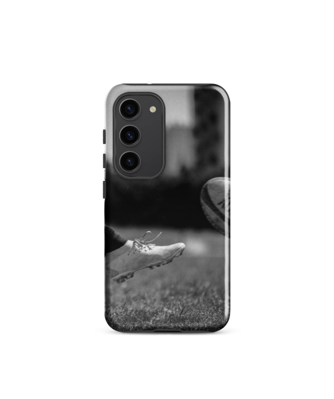 The Samsung CRAMBALL shell Les Francophones is a true celebration of the intensity of rugby. This beautiful hull features a captivating photo that features a powerful kick in a rugby ball. The striking scene highlights the details of the player's crampons in action, adding a dynamic touch to the overall aesthetic.