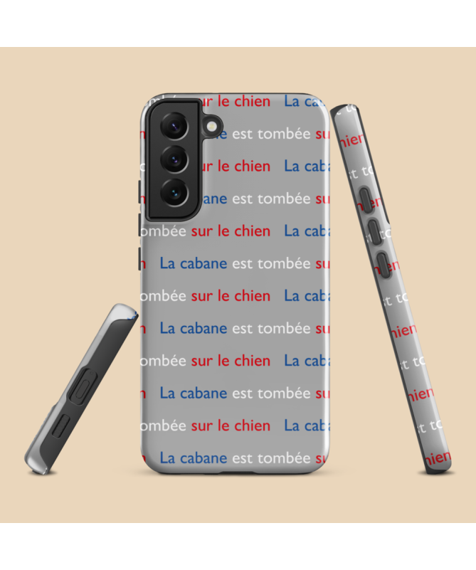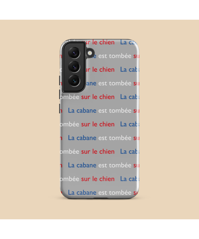 Display your passion for rugby with the Samsung "CHIENGRIS" hull" Les Francophones, bearing the iconic expression "The hut fell on the dog". Elegant and fun protection for your phone.