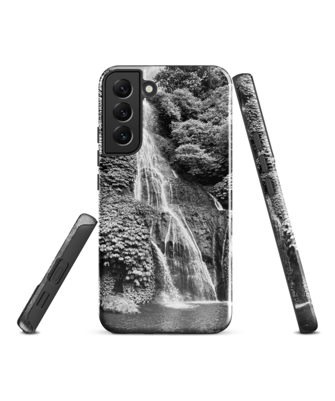 Immerse yourself in the wilderness with the Samsung FREDB CHUTE case. A black and white photo capturing the majesty of waterfalls in the heart of the Balinese jungle.