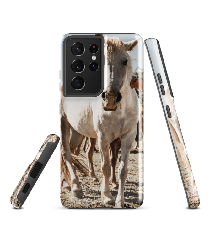 Cattura la grazia del cavallo Camargue con lo scafo Samsung CHEVAL BLANC Les Francophones, una protezione elegante per il telefono.
