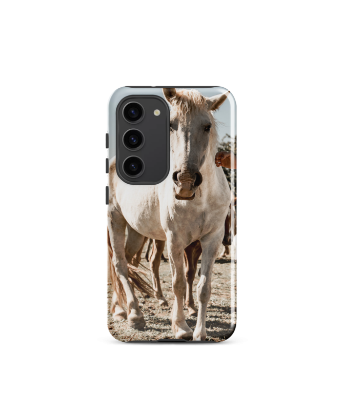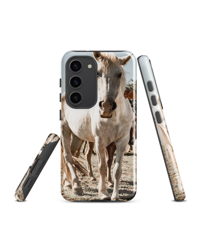 Cattura la grazia del cavallo Camargue con lo scafo Samsung CHEVAL BLANC Les Francophones, una protezione elegante per il telefono.