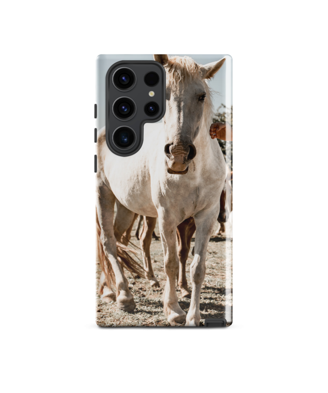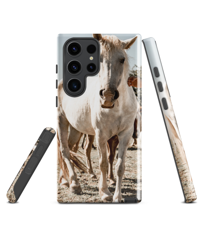 Cattura la grazia del cavallo Camargue con lo scafo Samsung CHEVAL BLANC Les Francophones, una protezione elegante per il telefono.